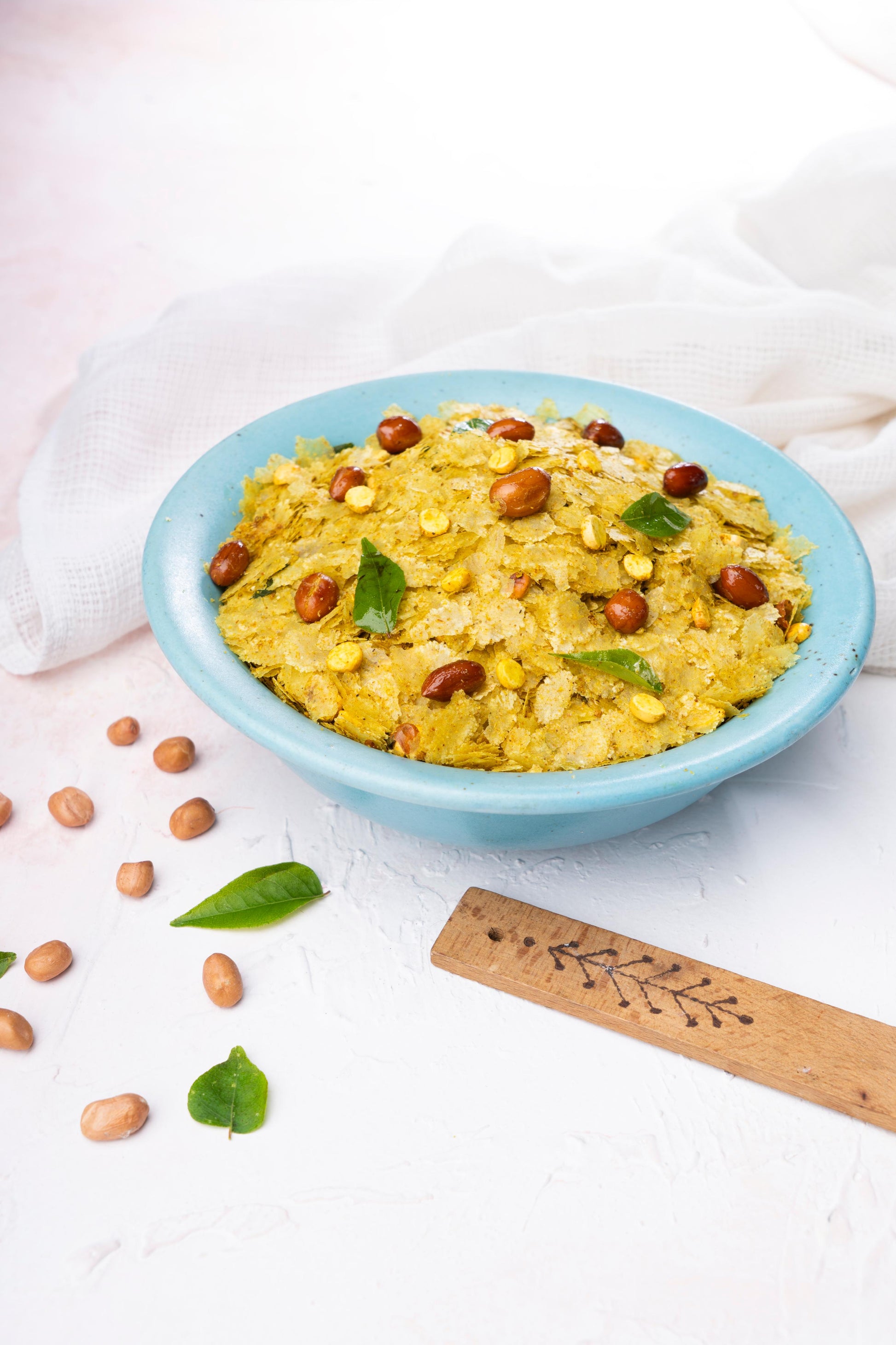 Chiwda - Poha is a traditional Indian snack crafted from flattened rice flakes, roasted to golden perfection and blended with aromatic spices, peanuts, and cashews. This light yet satisfying mixture delivers authentic flavors with every bite, making it an ideal choice for tea time, festive occasions, or whenever you crave a wholesome treat. The combination of crispy textures and warming spices creates a snack that appeals to both traditionalists and modern palates. Perfect for sharing with family or enjoying solo, this chiwda captures the essence of homemade Indian snacking at its finest.